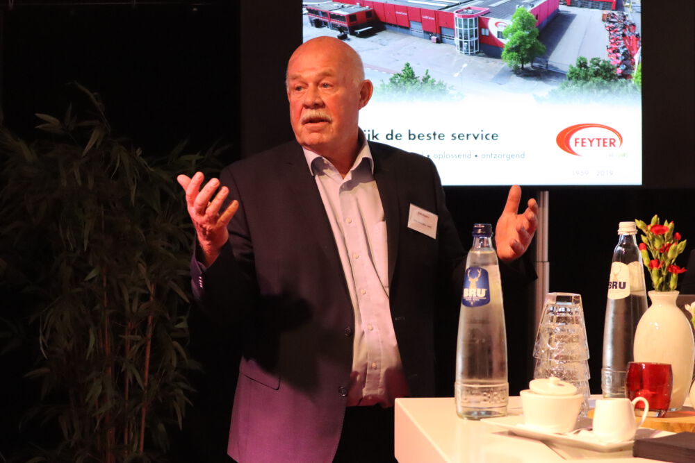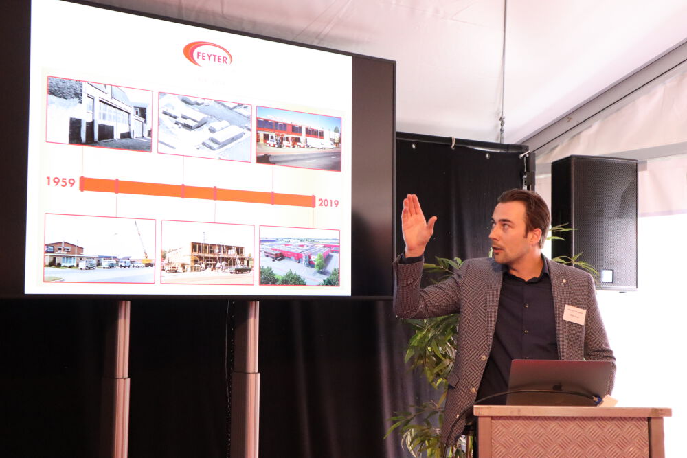 De participanten hadden een goede dag uitgekozen voor een bezoek aan Feyter, aangezien het bedrijf die week uitgebreid stil stond bij het 60-jarig jubileum. De vrijdag werden de relaties van het bedrijf uitgenodigd en op zaterdag was er een open dag voor het publiek. Op donderdag werden dus eerst de ZPPC participanten ontvangen. Na een welkomstwoord van vicevoorzitter Bert van Hoepen gaven Alex van ‘t Westeinde, managing director van Feyter Forklift Services, en Paul Verdurmen, directeur van Feyter Industrial Services, een korte presentatie over Feyter Group en zijn activiteiten. Verdeeld in twee groepen werden de deelnemers vervolgens rondgeleid over het terrein en door de fabriek waarbij ze uitgebreid tekst en uitleg kregen over het machinepark en de activiteiten van zowel Feyter Forklift Services en Feyter Industrial Services.