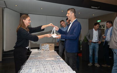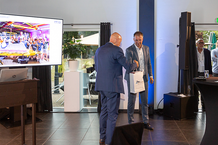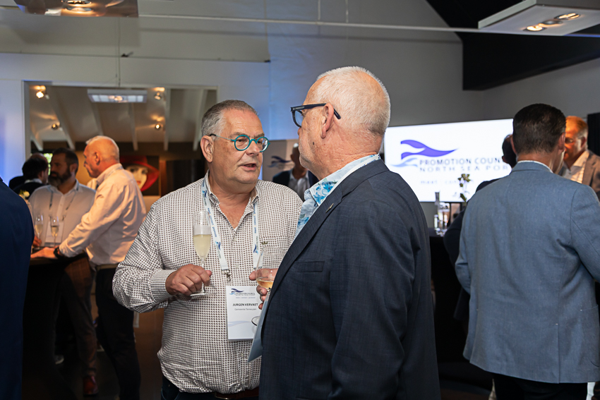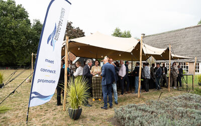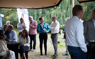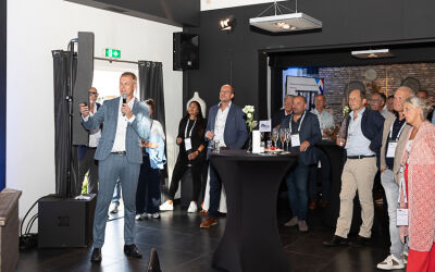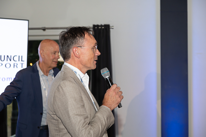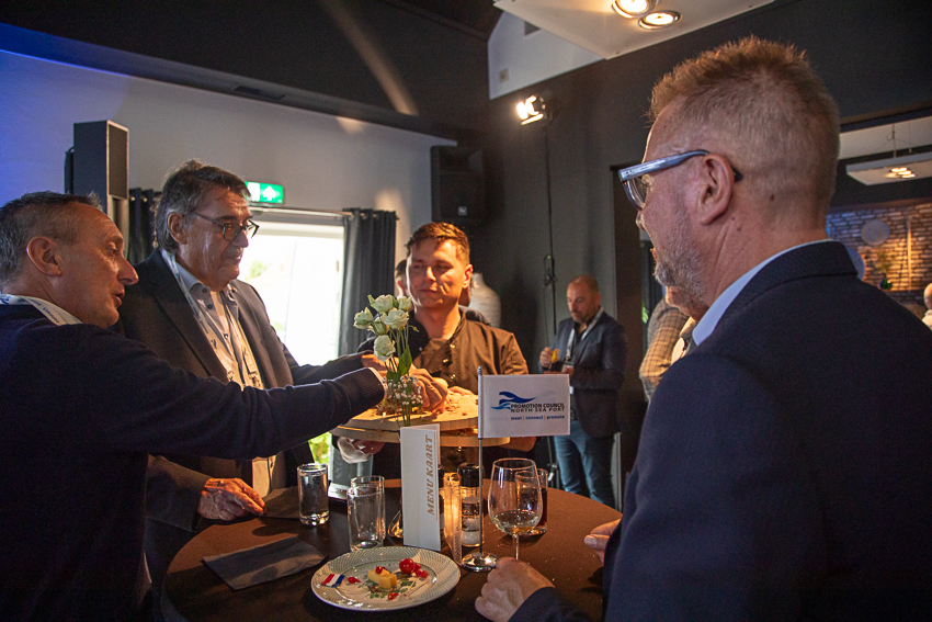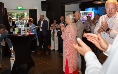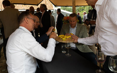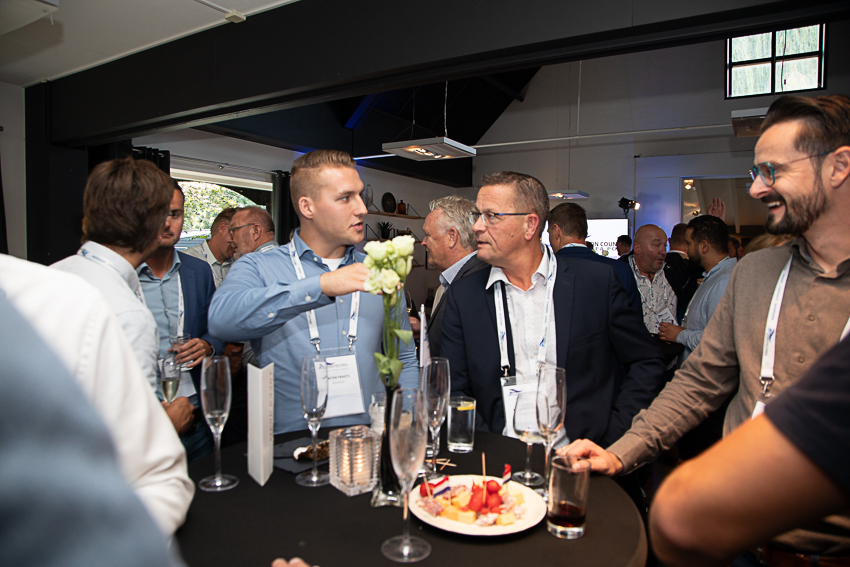 Na deze presentatie had voorzitter John Dane nog een mooi dankwoord voor Alex de Fouw, die onlangs afscheid nam als penningmeester van de Promotion Council. Aansluitend kon genoten worden van een walking dinner. Hoewel de weersvoorspellingen niet gunstig waren, bleef het droog en was er daardoor zowel binnen als buiten volop gelegenheid tot netwerken.